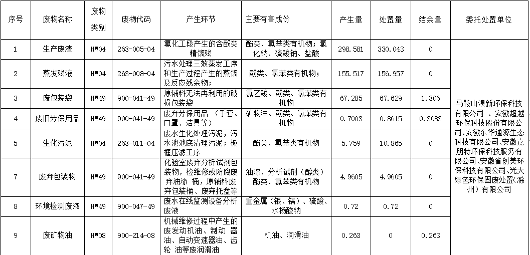 一(yī)、危險廢物(wù)産生(shēng)、轉移、貯存、處置情況公示: